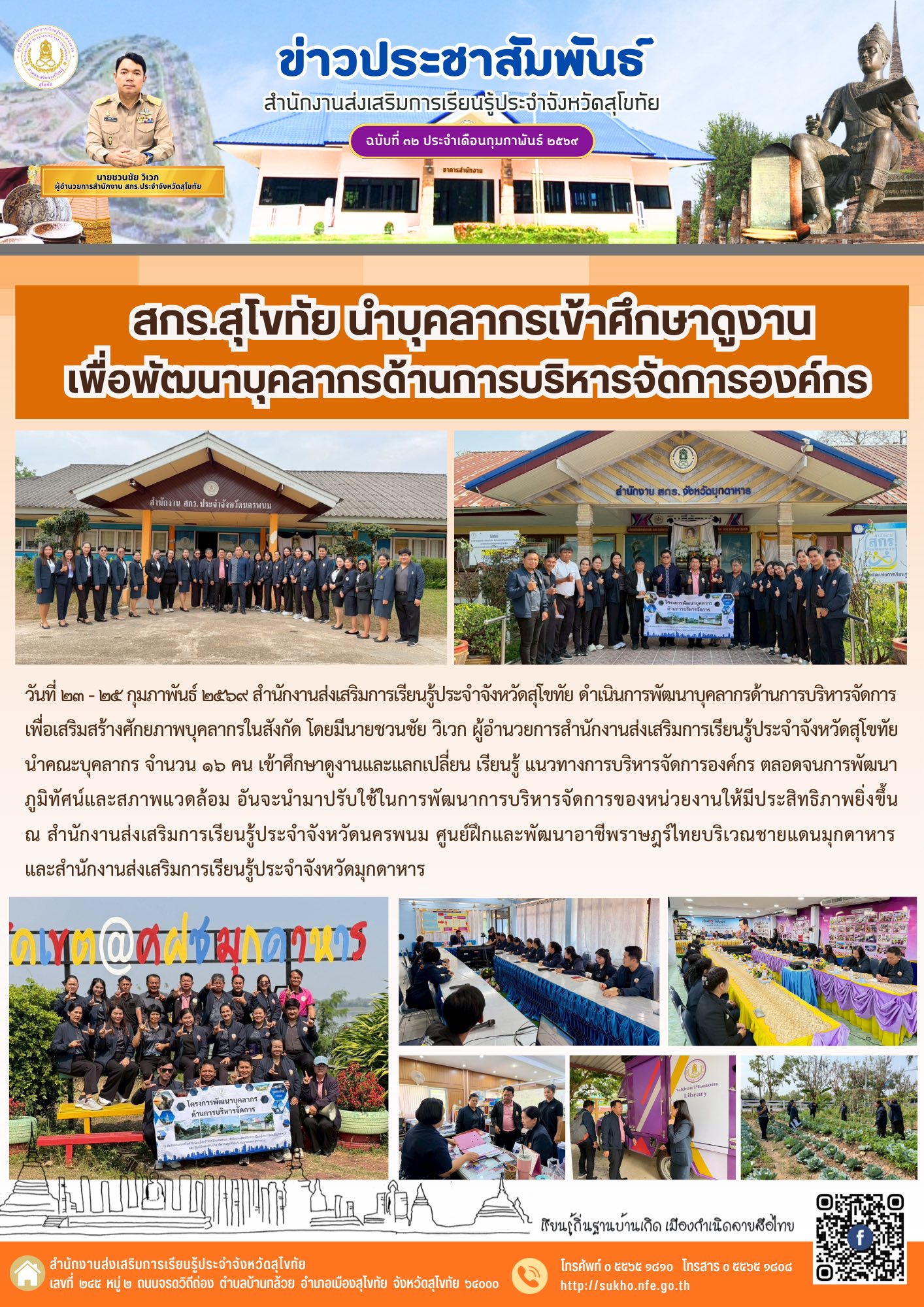 สกร.สุโขทัย นำบุคลากรเข้าศึกษาดูงานเพื่อพัฒนาบุคลากรด้านการบริหารจัดการอค์กร